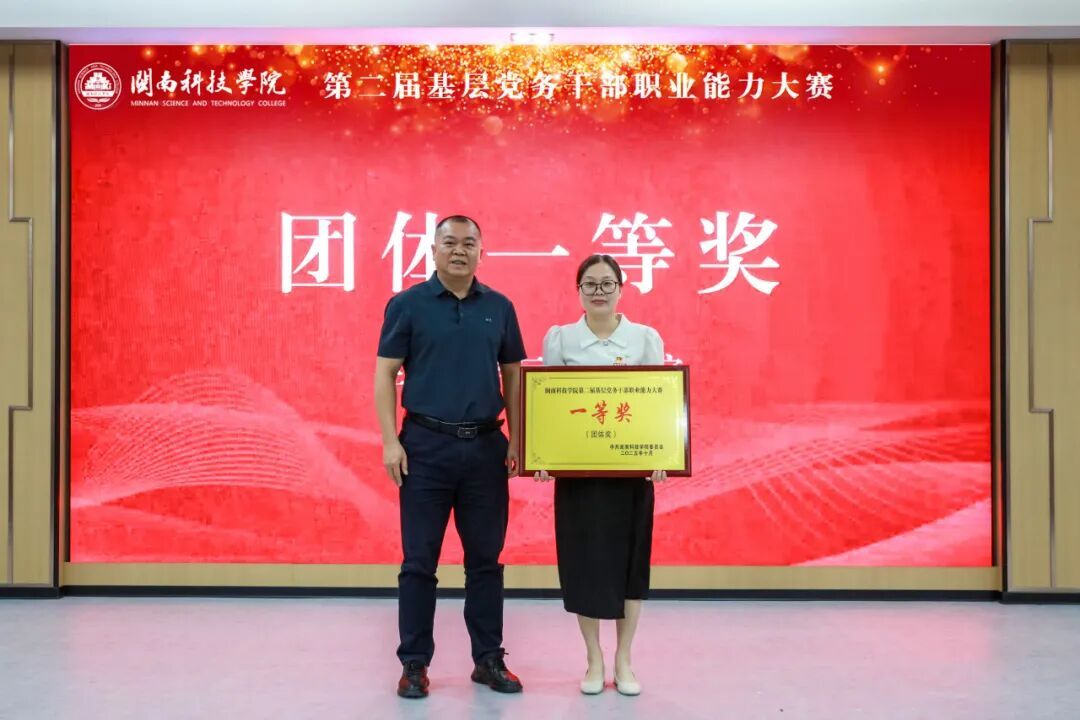 经过激烈角逐,生命科学与化学学院荣获团体一等奖,艺术设计学院、土木工程学院荣获团体二等奖;商学院、人文学院、计算机信息学院荣获团体三等奖。生命科学与化学学院、艺术设计学院、土木工程学院、生命科学与化学学院分别荣获“知识测试”“主题党日策划”“微党课”“谈心谈话”单项一等奖。